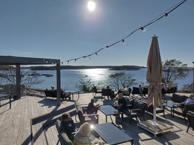 Så gikk turen videre til Laholmen i Strømstad for lunch ute på terrassen på hotellet i fortsatt strålende sol.