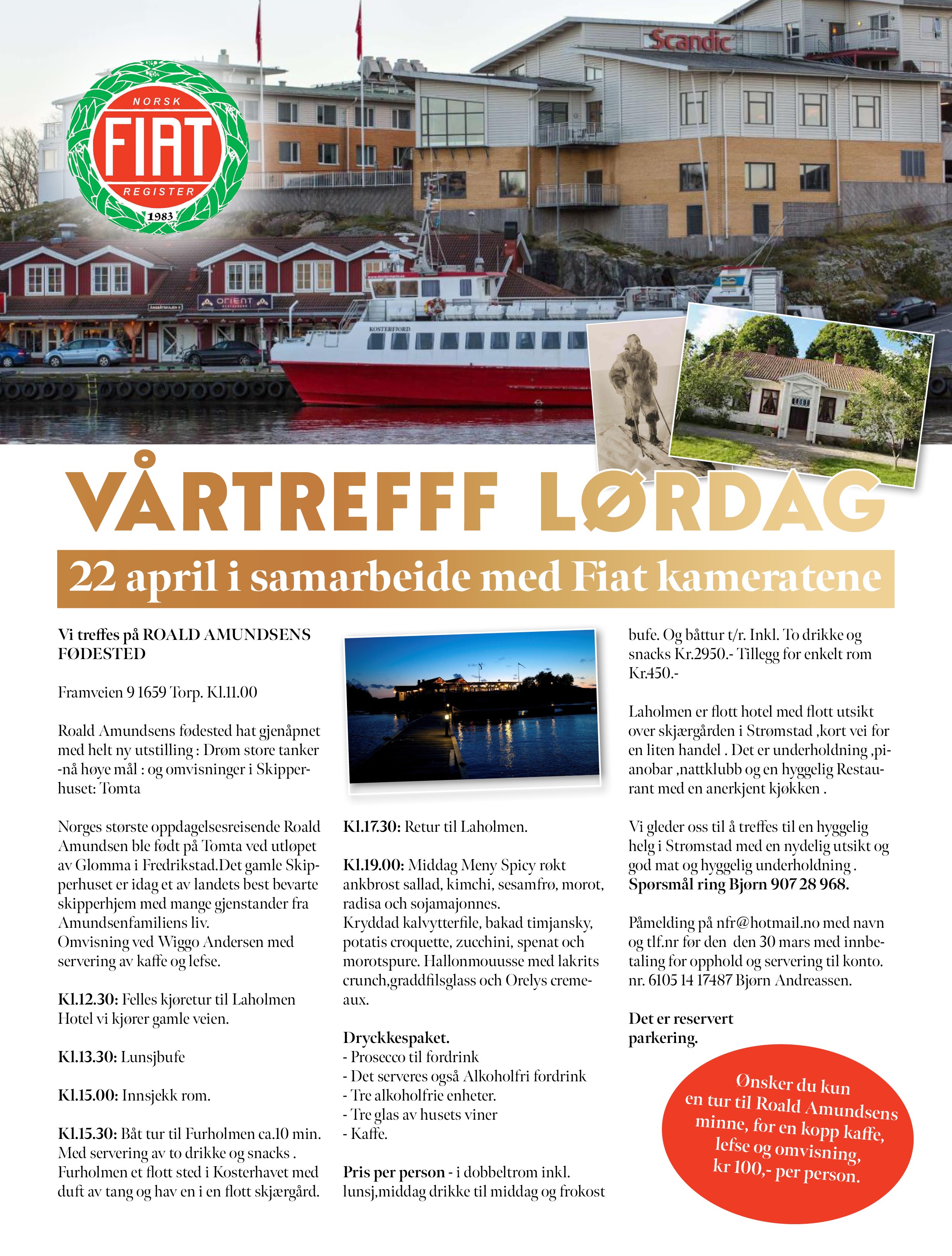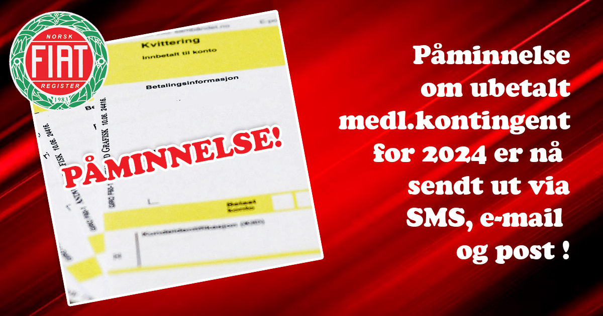 Grunnet vår formann Jon Edward Hansen's dødsfall, vil nestformann Magne Hvesser fungere som leder av Norsk Fiat Register inntil videre.
